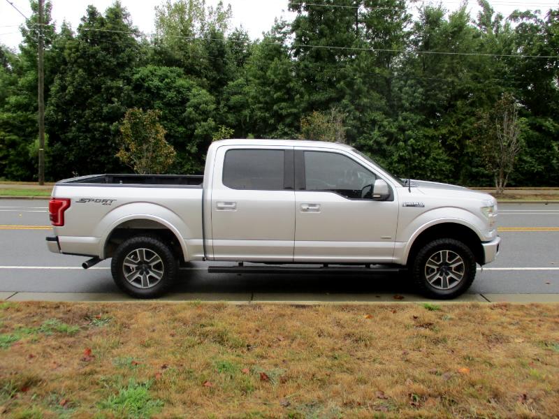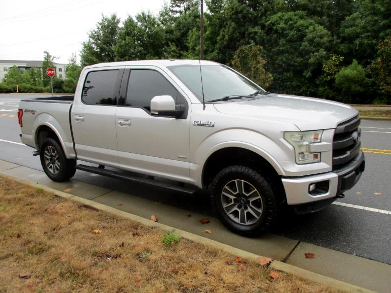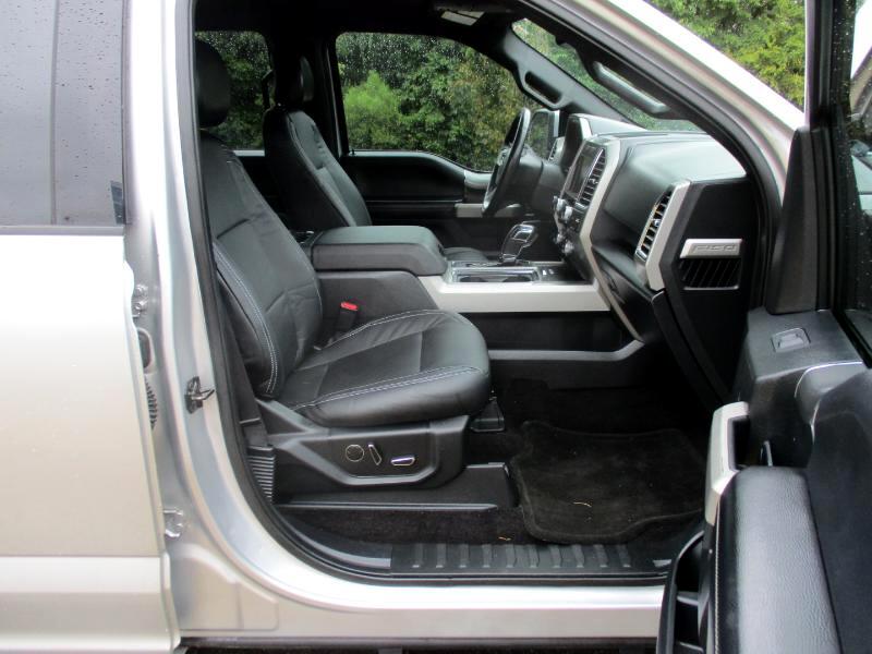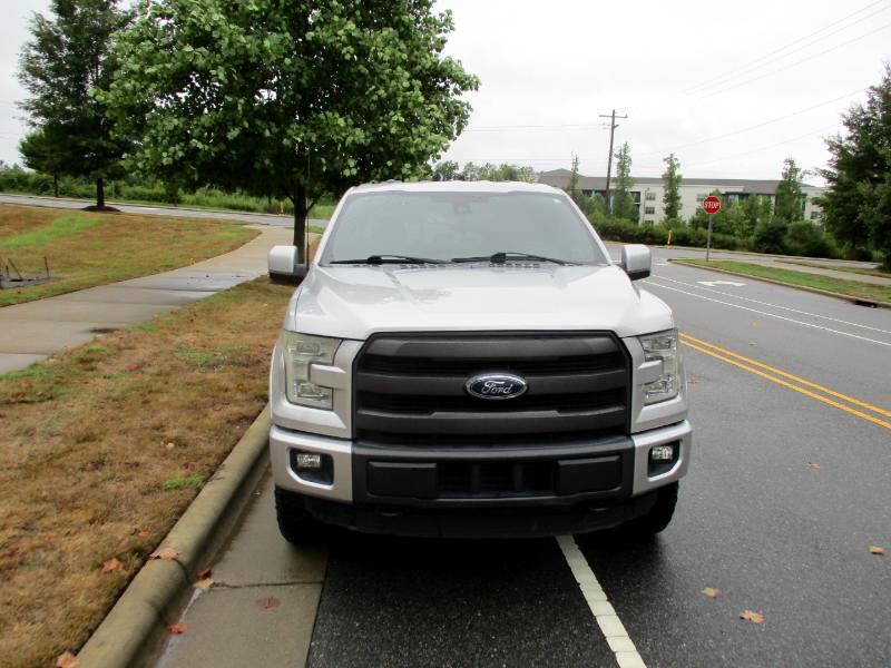 Nice One Owner Crew Cab 4x4 Lariat located in Charlotte, NC. Previous Corporate vehicle in great shape. Clean NC Title. Ingot Silver Metallic with Black Leather interior, 3.5L V-6 Eco boost, 6-speed automatic transmission, power windows, power locks, cruise control, tilt steering, power rear sliding window, 10 way power driver and passenger seats, dual climate control, adjustable pedals, heated and cooled front seats, Sony single CDw. HD radio, Sirius satellite radio, 4 wheels disc brakes w/ABS, power lock tailgate, rear view camera, spray in bedliner remote start, and more.